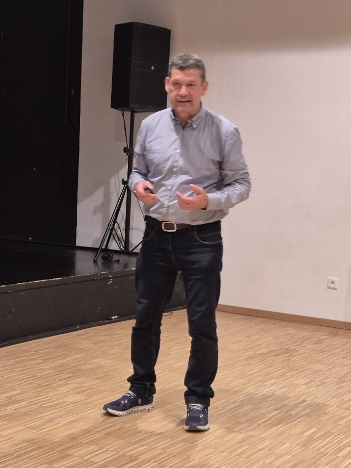 Panathlon-Mitglied und Gemeindepräsident von Mörel-Filet Alban Albrecht begrüsst eine grosse Schar vor dem Schulhaus in Mörel. Er informiert in Kürze über die Kastanienselve Salzgäb und stellt den Dörrofen vor. Ein feiner Apéro im Freien stimmt auf den Brisolée-Abend ein.